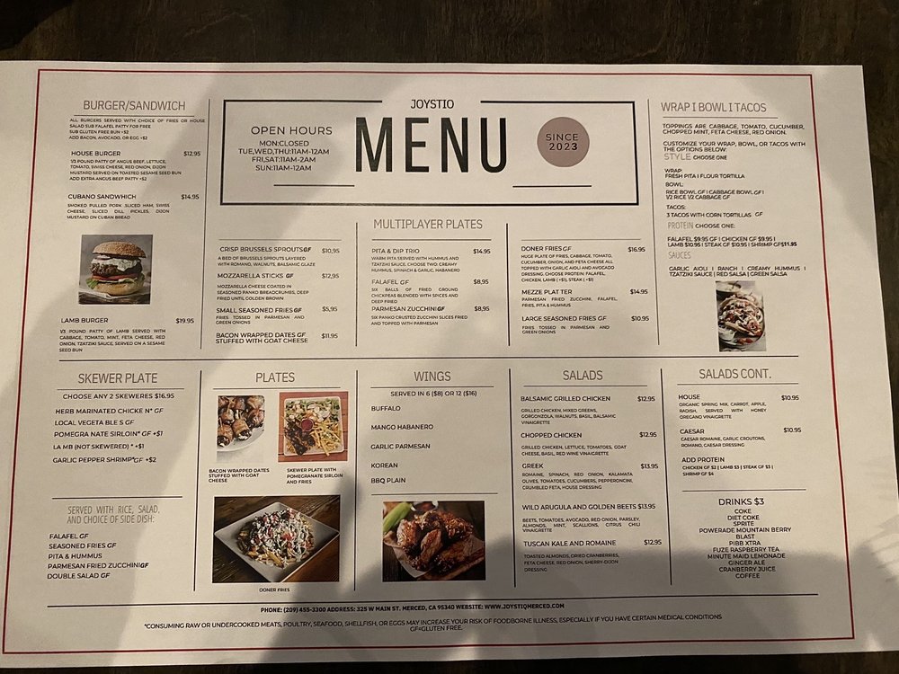 Joystiq at 325 W Main St Merced, CA 95340 offers a unique blend of arcade games, Mediterranean cuisine, and a full bar experience. Customers rave about the fun atmosphere, excellent food, and friendly service. The arcade games, including pinball machines and video games, provide entertainment for all ages. Special mentions go to the hot wings and seasoned fries, which are described as very good. The bar offers a variety of drink options at affordable prices, making it a popular spot for both locals and visitors. With a karaoke room, pool table, and basketball pop a shot, Joystiq is a great option for a fun night out with friends or a competitive date night. Be sure to check out their signature cocktail, the Princess Peach. Overall, Joystiq is a must-visit spot in downtown Merced for a memorable dining and gaming experience.
